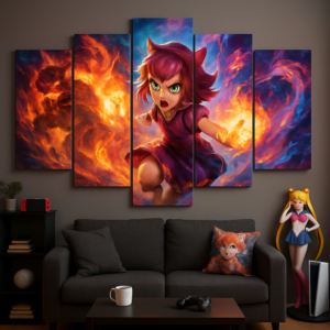 Transform Your Living Space With Stunning Annie Canvas Wall Art From League Of Legends: High-definition Five-panel Design For Anime And Gaming Fans