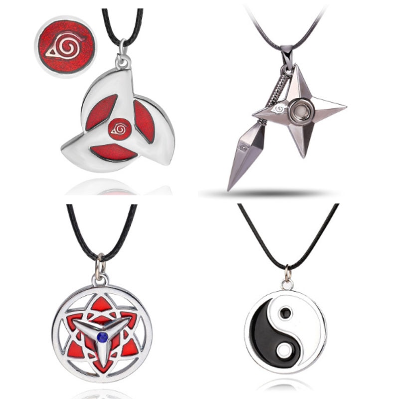 Naruto Hokage Metal Pendant Necklace 8 Styles Konoha Blood Round Eye Shuriken Symbols
